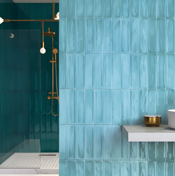 Finally, I’d like to discuss more colorful options, like a blue glazed porcelain tile. Thanks to their glazed structure, glazed tiles prevent water and other products from sticking, resist stains, and eliminate the tedious cleaning ritual of scrubbing. And instead of using basic colors, they achieve this with a striking, charming blue tile and a walk-in shower. So, we’ve talked about the best two options for you, ceramic vs porcelain shower tile, and let’s move on with the last option!
