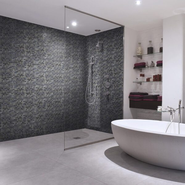 If we’re talking about truly water-friendly, low maintenance shower tiles, glass tiles are another option that should definitely be on this list. Glass tiles have very good water resistance, even being suitable for use as pool tiles, and mosaic options, in particular, could be just the easy to clean shower tile you’re looking for. For example, by choosing a non-slip glass shower floor, you can easily clean even the area where water flows and collects all product residue without scrubbing.
