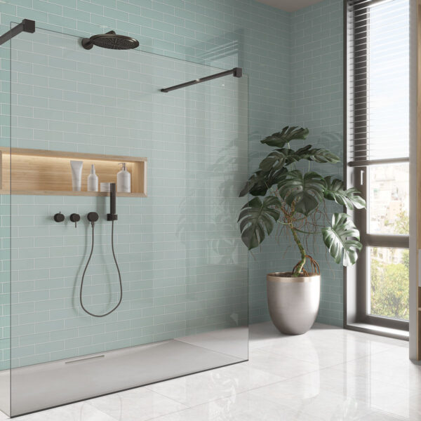 If you were to ask us if ceramic tiles are good for shower walls, we’d give a resounding yes without a second thought. Ceramic wall tiles are perhaps the easiest to clean shower tiles you’ve ever encountered. Glossy ceramic tiles, in particular, are the best option for quickly removing any substance that comes into contact with them, thanks to their glazed texture. Want to start with the classics? For example, a black and white bathroom is everyone’s dream, especially if you want to crown the white part with a classic like a white subway tile. Easy to maintain, budget-friendly, and one of the most aesthetically pleasing options you’ve seen, this ceramic tile will be your go-to for cleaning and all your bathroom routines.