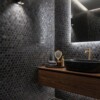 Make your bathroom, kitchen or any other place look perfect with Black Polished Hexagon Blend Glass Mosaic. Mosaic tiles are quite popular among homeowners and business owners alike because of their beauty, sophistication, and variety. They are perfect for kitchen backsplashes, bathroom wall tiles, and other decorative tile applications. Glass is perfectly impervious to any oil, acid, or staining. It is the most practical surface covering material. It is affordable and easy to install. It is easy to clean and maintain them. Our glass tiles include both back-painted tiles as well as solid color tiles. You can achieve stylish reflections with the Polished surface of the Black Polished Hexagon Blend Glass Mosaic. For flexibility in design and installation, a wide range of coordinating wall tiles, floor tiles, and mosaic tiles are available.