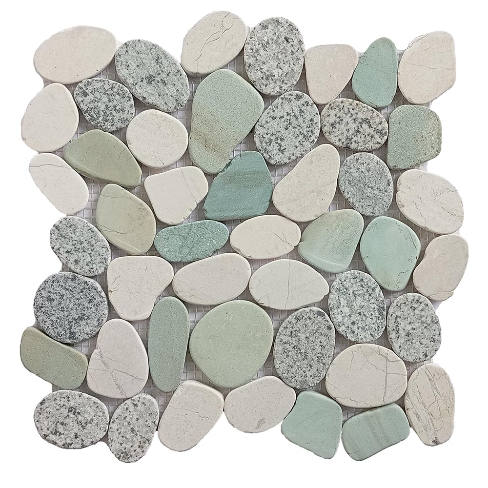 White Mosaics 12x12 Pebble MosaicsMake your bathroom, kitchen or any other place look perfect with Seafrost Natural Pebble Mosaic. Mosaic tiles are quite popular among homeowners and business owners alike because of their beauty, sophistication, and variety. With a Natural finish, this tile is sure to lend sophisticated splendor to your room design. For flexibility in design and installation, a wide range of coordinating wall tiles, floor tiles, and mosaic tiles are available.