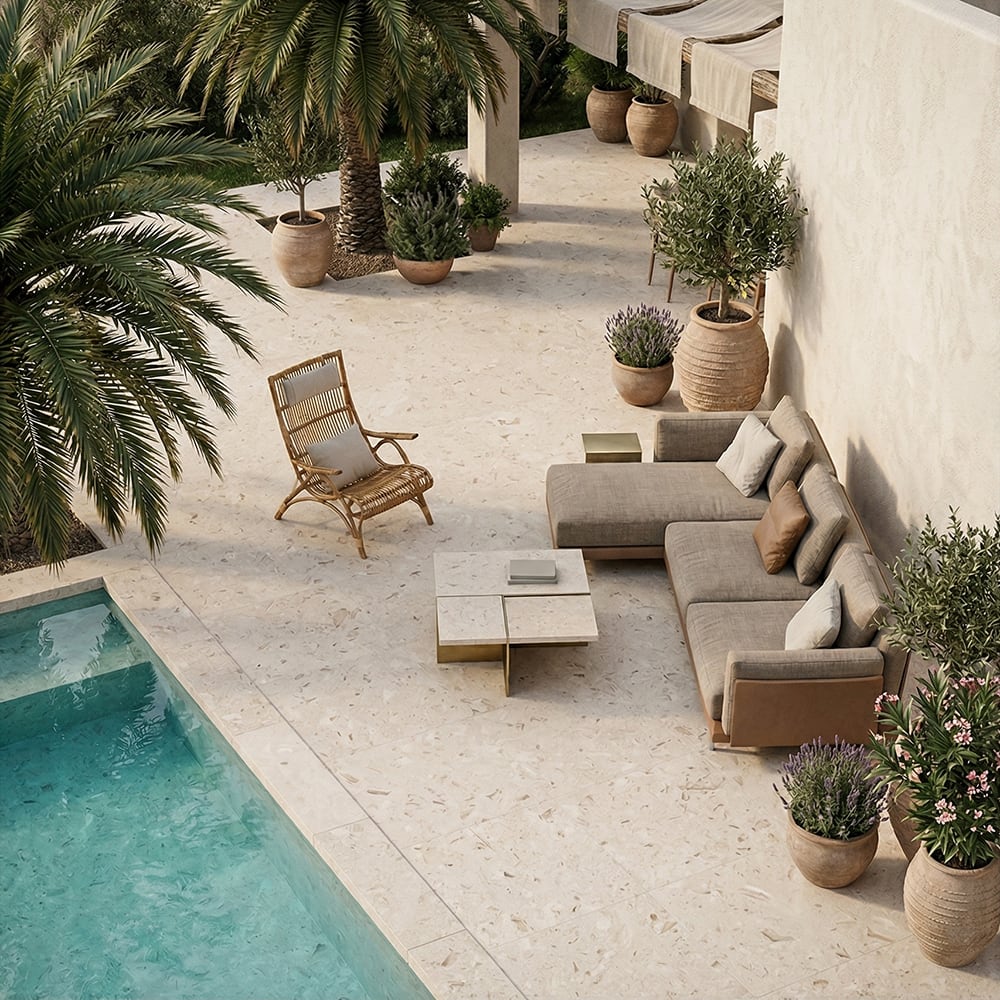 For outdoor use, it stays cool in the sun and feels steady underfoot. Inside, it’s often chosen for projects that lean natural, especially where texture is more important than pattern.