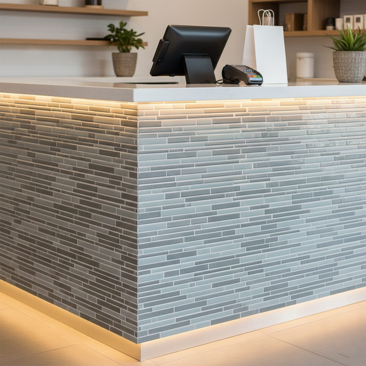Make your bathroom, kitchen or any other place look perfect with Sterlina Gloss/matte Interlocking Slides Glass Mosaic. Mosaic tiles are quite popular among homeowners and business owners alike because of their beauty, sophistication, and variety. They are perfect for kitchen backsplashes, bathroom wall tiles, and other decorative tile applications. Glass is perfectly impervious to any oil, acid, or staining. It is the most practical surface covering material. It is affordable and easy to install. It is easy to clean and maintain them. Our glass tiles include both back-painted tiles as well as solid color tiles. For flexibility in design and installation, a wide range of coordinating wall tiles, floor tiles, and mosaic tiles are available.