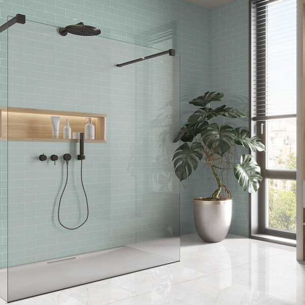 The downside of a horizontal shower tile? If you have low ceilings, a horizontal layout won’t help lift the room and may not look as good as you’ve expected. You also need to be careful with how your shower wall tiles meet the ceiling line, as horizontal lines can sometimes emphasize uneven ceilings (and we need to cover the flaws). But when paired with a safe, non slip bathroom floor tile, it’s a safety first kind of traditional choice. So, when asking shower tile vertical or horizontal, horizontal wins for width.