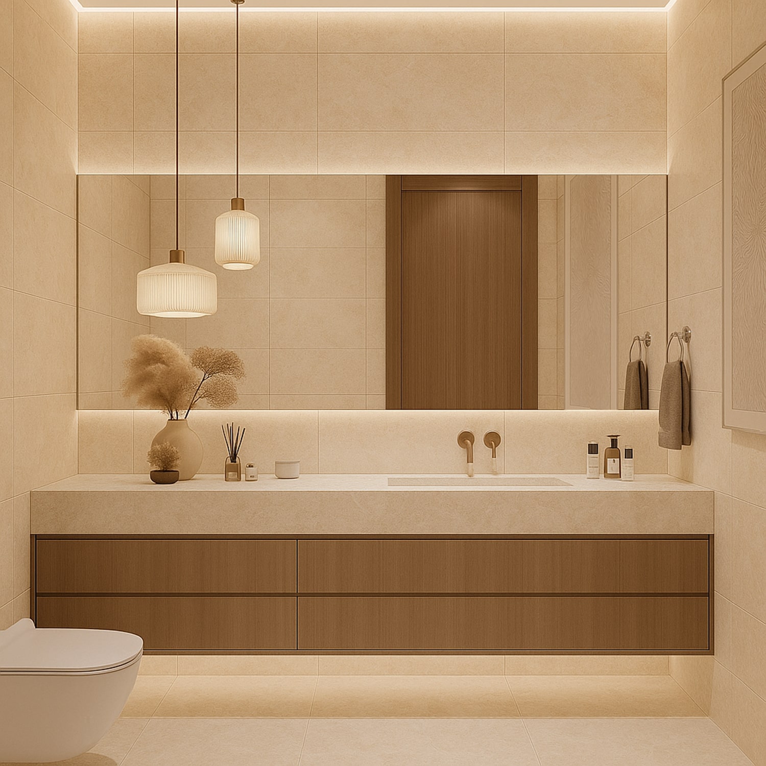 Bathroom floor tiles take more harsh use than most people realize: steam, standing water, skincare products with oil and acid every single morning. Porcelain handles all of it without complaint compared to natural stones. For bathroom tile walls, especially in a shower, the same logic applies: you want something that seals well, stays looking clean, and doesn’t require you to regrout every two seasons.